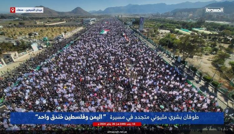 طوفان مليوني متجدد في السبعين تحت شعار (اليمن وفلسطين خندق واحد)