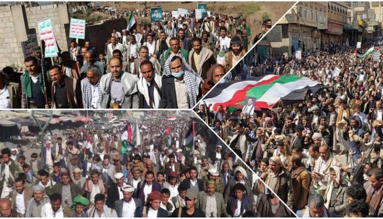 مسيرات في مديريات ذمار تأكيدا على واحدية المعركة للشعبين اليمني والفلسطيني