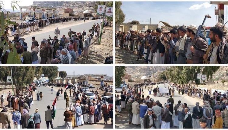 وقفة قبلية لأبناء شبام كوكبان لإعلان النكف والنفير العام دعماً لغزة