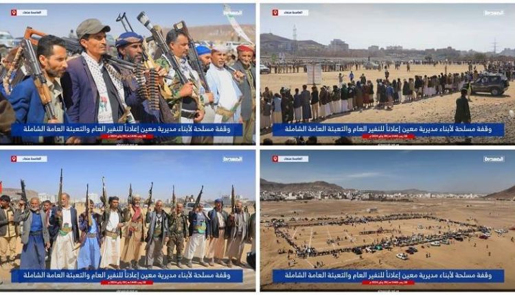 نظم أبناء مديرية معين بأمانة العاصمة، اليوم الاثنين، مسيرة شعبية ووقفة قبلية مسلحة وعرض عسكري شعبي دعماً للشعب الفلسطيني ونصرة لطوفان الأقصى، ورفضا للعدوان الأمريكي البريطاني، تحت شعار “الفتح الموعود والجهاد المقدس”.