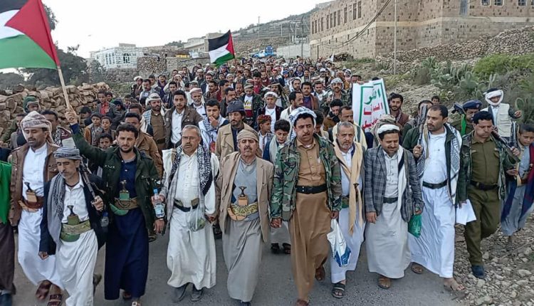 مسيرة “مع غزة ملتزمون حتى النصر” بمديرية وصاب العالي محافظة ذمار.