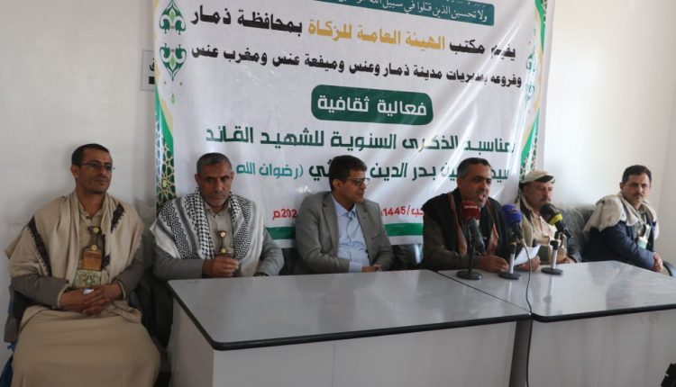 نظم مكتب الهيئة العامة للزكاة بمحافظة ذمار، اليوم، فعالية ثقافية بمناسبة الذكرى السنوية للشهيد القائد السيد حسين بدر الدين الحوثي (رضوان الله عليه).