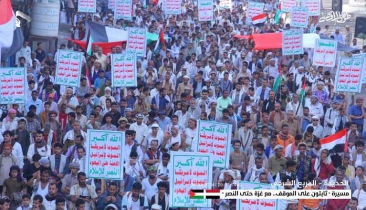 نصرة للشعب الفلسطيني ومواجهة للعدوان الأمريكي البريطاني.. مسيرات حاشدة في الحديدة