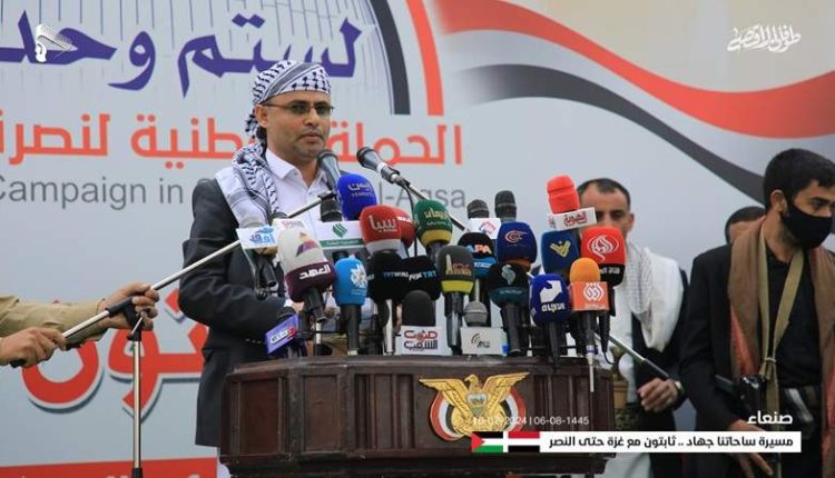 وقال الرئيس المشاط في كلمته: “من هذه المكان أقول لثلاثي الشر الذي يعتدي على أهلنا في غزة عليه أن يوقف العدوان ويرفع الحصار عن غزة ولا حل لهم سوى هذا الخيار”، في تأكيد على أن الموقف اليمني لن يقبل المساومة.