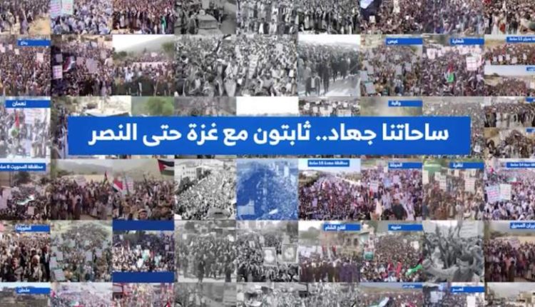 شاهد مقطع فيديو يوجز عشرات التظاهرات الكبرى التي شهدتها أكثر من ١٠٠ ساحة يمنية .. ضمن الخروج المليوني الأضخم وغير المسبوق منذ بداية طوفان الأقصى في مسيرات حملت عنوان “ساحاتنا جهاد.. ثابتون مع غزة حتى النصر”.