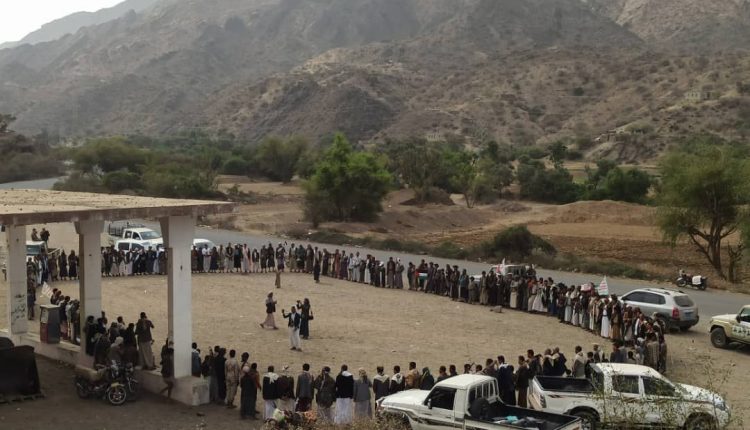 احتشدت قبائل عزلة مُربع مخلاف بني أسعد في مديرية جبل الشرق بمحافظة ذمار، اليوم ، في وقفة قبلية مسلحة، تضامناً مع الشعب الفلسطيني، تحت شعار “ساحاتنا جهاد .. مع غزة حتى النصر”.