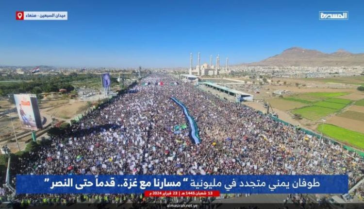 صنعاء تشهد الطوفان المليوني الأضخم تحت شعار (مسارنا مع غزة.. قُدماً حتى النصر)