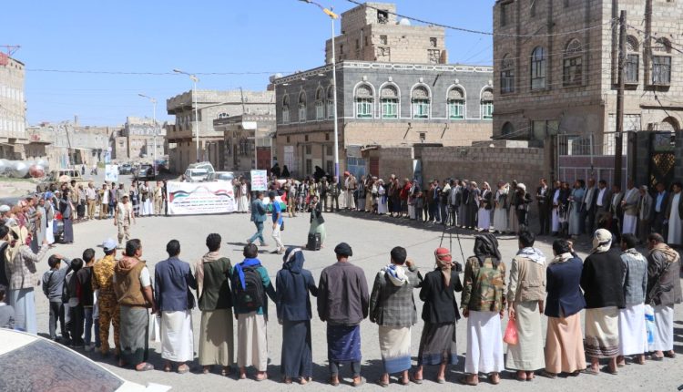 نظم مكتب الهيئة العامة للزكاة بمحافظة ذمار، اليوم، وقفة تضامنية مع الشعب الفلسطيني، وتنديداً بالعدوان الأمريكي البريطاني على اليمن، تحت شعار “مسارنا مع غزة… قدماً حتى النصر “.