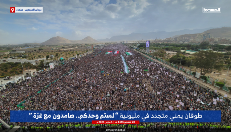 طوفان مليوني متجدد بصنعاء نصرة لغزة في مسيرة (لستم وحدكم.. صامدون مع غزة)