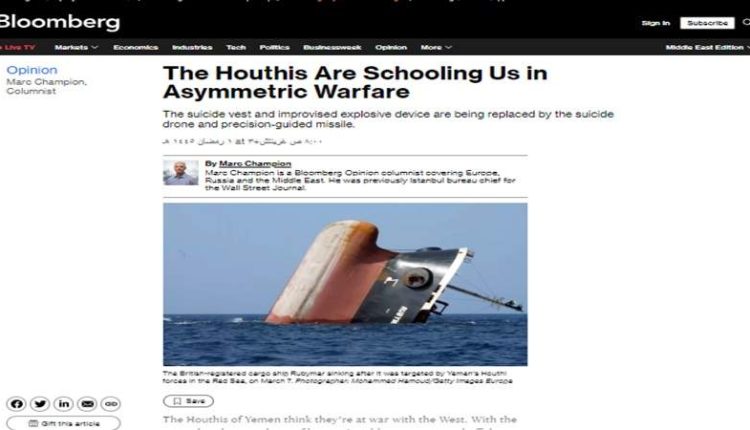 أكدت وكالة “بلومبيرغ” أن القوات المسلحة اليمنية أثبتت نجاحاً كبيراً في إدارة “الحرب غير المتكافئة” وأثبتت أن الدول الغنية والقوية عسكرياً كالولايات المتحدة الأمريكية لديها نقاط ضعف كثيرة تجعلها في مأزق.