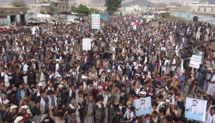 وحمل المشاركون رايات الحرية والأعلام اليمنية والفلسطينية، ورددو الهتافات المنددة بحرب الإبادة التي يتعرض لها الشعب الفلسطيني منذ 6 أشهر في ظل صمت عربي وإسلامي مطبق.