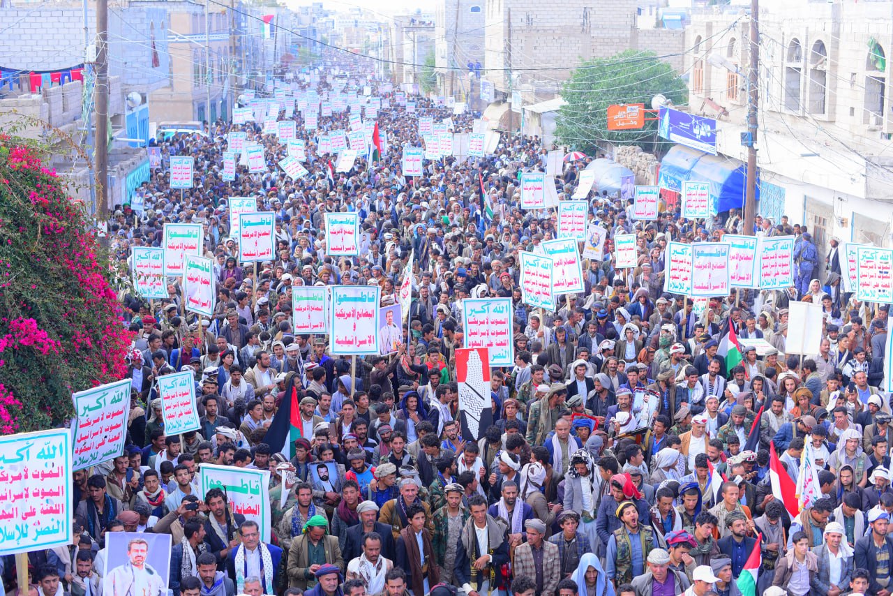 ووجه الشعب اليمني النداء الى الشعوب العربية والإسلامية أن يكون لهم موقف واضح ومشرف في مايجري لإخوانهم وأبناء دينهم ابناء الشعب الفلسطيني من تجويع ومجاعه وحرب شرسه صهيونيه .