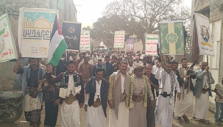 مسيرة جماهيرية بمديرية وصاب السافل نصرة ودعماً للشعب الفلسطيني وقضيته العادلة
