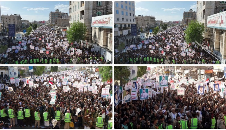 ورددوا هتافات الحرية والبراءة من أعداء الأمة، والتأكيد على الجهوزية التامة لخوض معركة “الفتح الموعود والجهاد المقدس” والتصدي للعدوان الأمريكي البريطاني على اليمن.