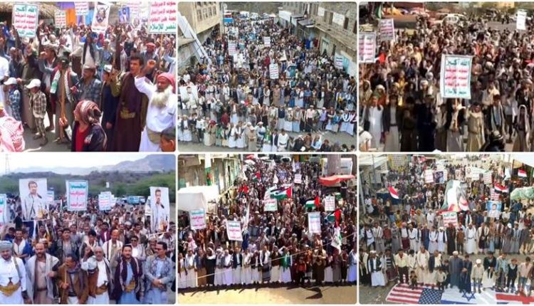 وأكدت بيانات صادرة عن المسيرات، استمرار الشعب اليمني في الخروج المشرف لمناصرة الأشقاء في غزة.