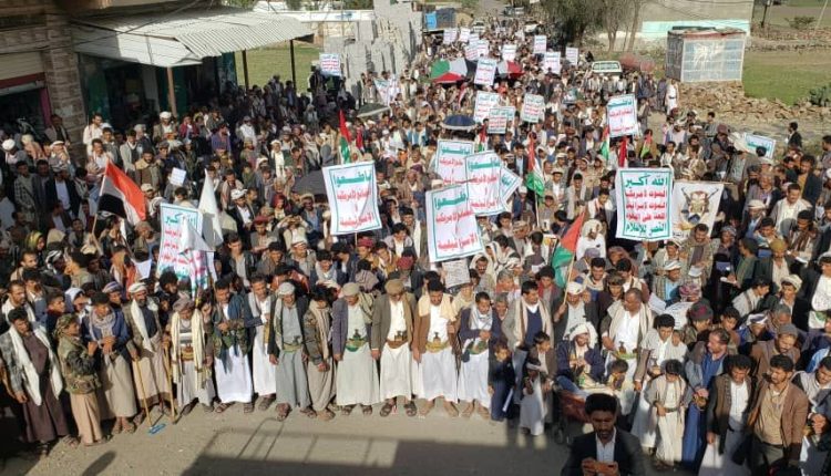 وخلال المسيرة بحضور مسؤول التأهيل بالمحافظة مسعود الخطري، ومدير المديرية ناجي صبر، ومسؤول التعبئة العامة أحمد المعبري، ردّد المشاركون الهتافات المُندّدة باستمرار جرائم العدو الصهيوني بحق الشعب الفلسطيني، والغارات الأمريكية والبريطانية السافرة التي طالت عدد من المحافظات اليمنية.