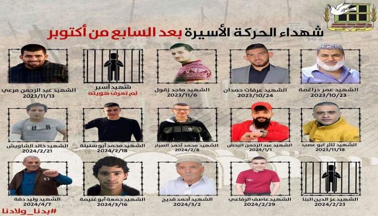ارتفاع عدد شهداء الحركة الأسيرة داخل سجون العدو الصهيوني بعد الـ7 من أكتوبر إلى 14 شهيدًا
