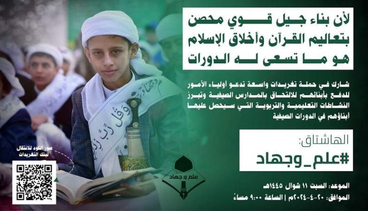 تنطلق في الساعة التاسعة من مساء اليوم، حملة تغريدات على موقع التواصل الاجتماعي “إكس” لإبراز أهمية الدورات الصيفية وهدفها في بناء جيل قوي محصن بتعاليم القرآن وأخلاق الإسلام.