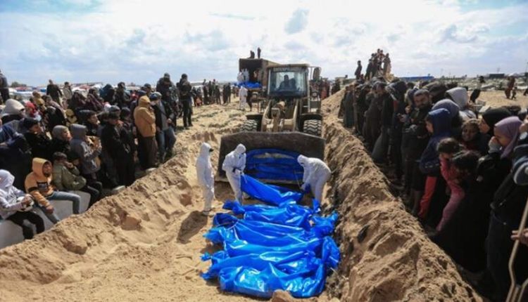 وقال إسماعيل ثوابتة المتحدث الحكومي إن قطعان “كيان العدو أعدوا مقبرة داخل أسوار مجمع ناصر لإخفاء جرائمهم”، مرجحا “وجود 700 شهيد في مقابر جماعية أعدمهم قطعان كيان العدو داخل مجمع ناصر”، جنوب قطاع غزة.