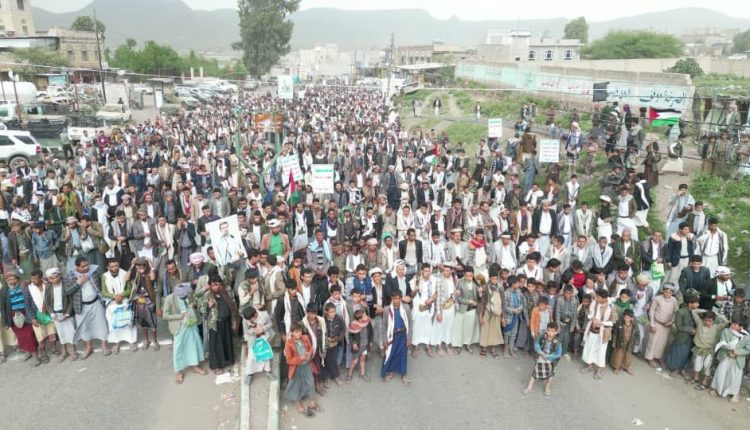 وهتفت الجماهير المحتشدة في المسيرة بشعارات البراءة من أعداء الأمة والثبات على الموقف في نصرة الشعب الفلسطيني.