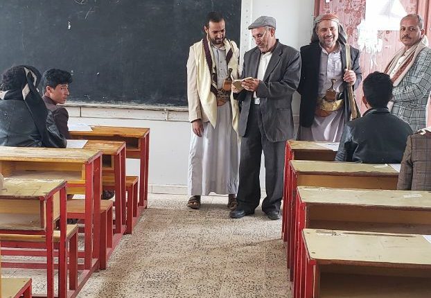 واطلع المهدي والخالدي،على سير الاختبارات في المركز الاختباري بمدارس (الوحدة و أسماء بمدينة ضوران ـ مجمع الامام علي بن ابي طالب باحلال).