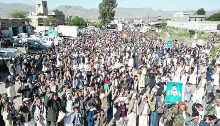 مسيرة حاشدة بضوران تحت شعار “وفاء يمن الأنصار لغزة الأحرار”