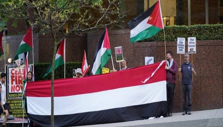 أقام ناشطون سلميون، الإثنين، وقفة احتجاجية رمزية معبرة أمام القنصلية الأمريكية في مدينة فانكوفر الكندية للتضامن مع فلسطين واليمن، وإحياء للذكرى الـ76 للنكبة في فلسطين.