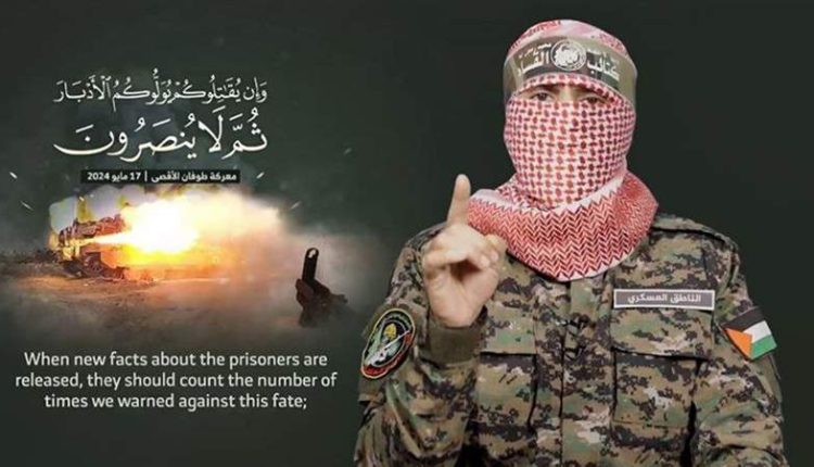 وتابع: “إن متلازمة الفشل والتخبط لقيادة العدو السياسية والعسكرية في المعركة البرية وأكذوبةَ ما يسمى بالضغط العسكري لتحرير الأسرى والمحتجزين هو وصفة لتسريع ذهاب أسرى العدو إلى المجهول، وإننا نعلن باستمرار وبكل وضوح وبالأسماء والصور عن بعض حالات القتل والموت لأسرى العدو بسبب عدوان جيشهم و تعنت وإجرام حكومتهم ورئيسها الفاسد”