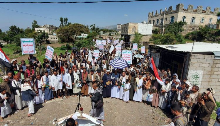 خرجت بمديرية عتمة في محافظة ذمار مسيرة جماهيرية حاشدة تحت عنوان ” مع غزة .. ثبات الموقف واستمرارية الجهاد ”