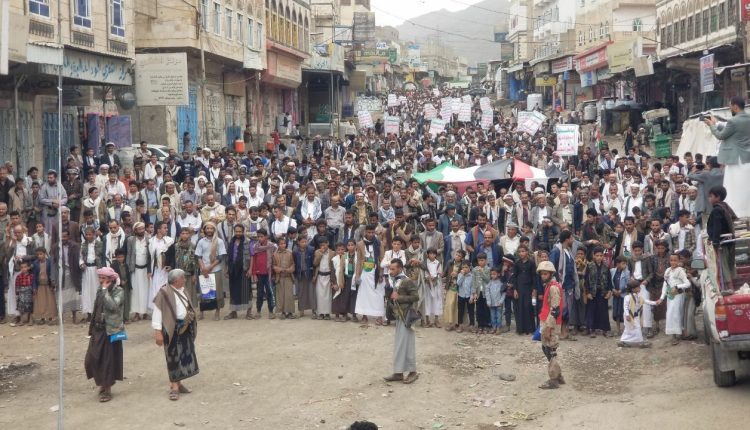وخلال المسيرة التي تقدمها وكيل المحافظة هلال المقداد، وأمين عام المجلس المحلي بالمديرية أحمد الجبر، ومسؤول التعبئة العامة أحمد المعبري، حمل المُشاركون الشعارات القاضبة مُرددين الهتافات المُندّدة باستمرار الجرائم البشعة التي يرتكبها الكيان الصهيوني الغاصب بحق أبناء الشعب الفلسطيني في ظل صمتٍ المجتمع الدولي.