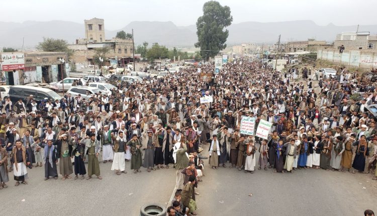 خروج جماهيري حاشد بمديرية ضوران تحت شعار “ثابتون مع غزة رغم أنف كل عميل”