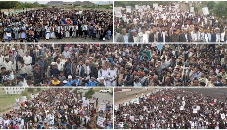 وخرجت مسيرات بساحتي مركز مديرية شرعب السلام – والمربع الشمالي جسر نخلة وساحة مركز مديرية شرعب الرونة والاثاور في مربع الخزجة بمديرية حيفان.