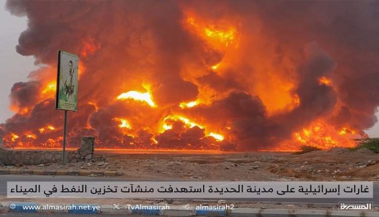 وتعرضت مدينة الحديدة اليوم السبت لعدوان صهيوني أمريكي غاشم استهدف منشآت تخزين النفط في ميناء الحديدة غربي اليمن.
