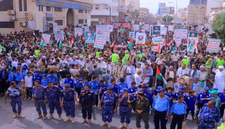 في 27 ساحة.. الحديدة تشهد طوفانا بشريا في مسيرات دعم الشعب الفلسطيني