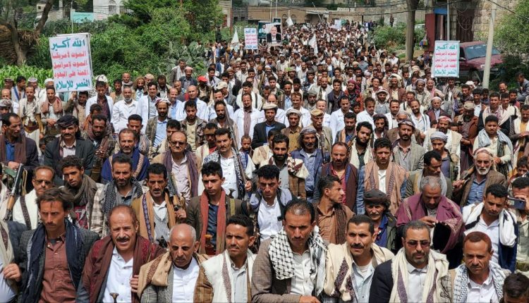 خرج أبناء مديرية عتمة بحافظة ذمار اليوم في مسيرة جماهيرية حاشدة استمراراً للتضامن مع الشعب الفلسطيني بعنوان “وفاءً لدماء الشهداء .. مع غزة حتى النصر”.