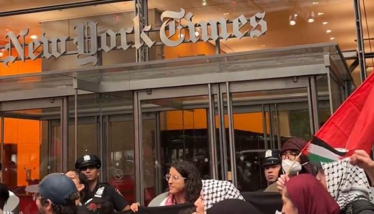 شارك آلاف النشطاء في مدينة نيويورك، في مظاهرات حاشدة أمام مقرات عدة لوسائل إعلام أمريكية أبرزها “نيويورك تايمز”، و”نيوز كوربوريشن” المالكة لـ”فوكس نيوز”، تنديدًا بالتغطية المتحيزة التي تقوم بها لصالح رواية العدو الصhيوني المزيفة في عدوانه وحرب الإبادة على قطاع غزة.