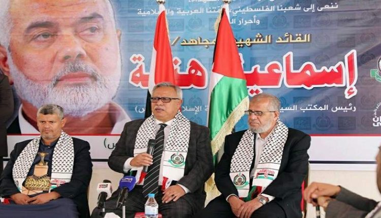 مسؤولو الدولة يزورون مكتب حماس بصنعاء لتقديم واجب العزاء في استشهاد القائد هنية
