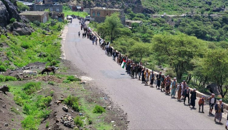 نظمت التعبئة العامة في مديرية عتمة بمحافظة ذمار مسير وعرض شعبي لخريجي الدفعة السادسة من الدورات المفتوحة “طوفان الأقصى” دعما واسنادا للشعب الفلسطيني.