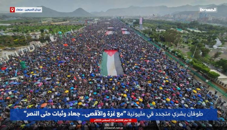 مليونية جديدة في صنعاء نصرة لفلسطين تحت شعار “مع غزة والأقصى.. جهاد وثبات حتى النصر”