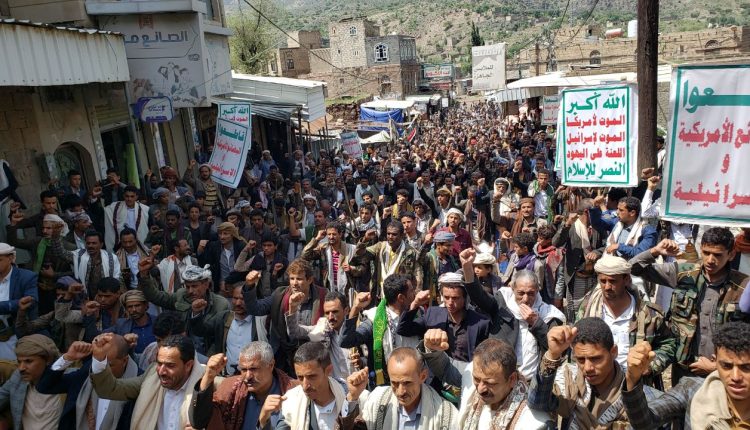 شهدت مديرية المنار ،اليوم، مسيرة جماهيرية حاشدة تضامناً مع الشعب الفلسطيني، واستجابة لدعوة السيد القائد، تحت شعار “ نصرتنا لغزة والأقصى . .مسؤولية وجهاد”