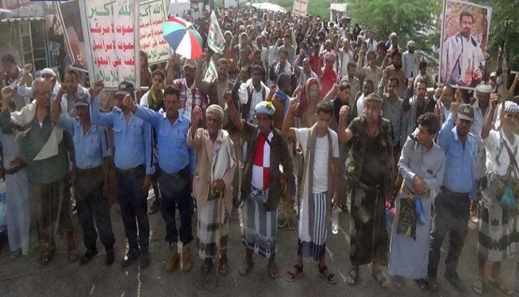 ونددت المسيرة التي شارك فيها وكيل المحافظة فيصل الفقيه ومسؤول التعبئة جميل الصوفي وأركان حرب اللواء 119 مشاة العقيد مصطفي المكردي وقيادات عسكرية وأمنية وشخصيات اجتماعية، باستمرار الكيان الصهيوني في ارتكاب المجازر وجرائم الإبادة بحق الأشقاء في غزة، وكذا انتهاكاته السافرة للمقدسات الإسلامية في فلسطين.