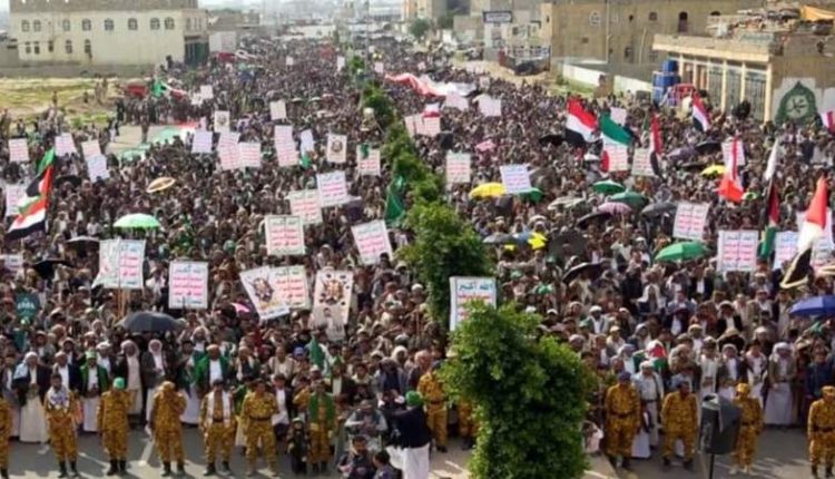 احتشد أبناء محافظة عمران اليوم الجمعة، في 43 مسيرة، وفاء للرسول الأعظم وتضامناً مع الشعب الفلسطيني تحت شعار (مولد نبي الهدى.. دعوة لنصرة غزة والأقصى) .