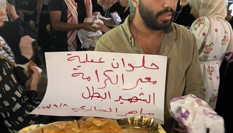 خرج آلاف الأردنيين في مسيرة، مساء الأحد، من المسجد الحسيني وسط عمان القديمة، لإقامة “زفة شهيد” بعد عملية معبر الكرامة التي نفذها الشهيد الأردني ماهر الجازي.