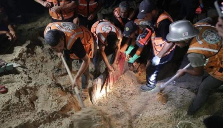 وأوضح الأورومتوسطي أن تحقيقاته الأولية أظهرت أن طائرات حربية “إسرائيلية” ألقت ثلاث قنابل من نوع MK-84 الأمريكية الصنع، بعد منتصف ليل الثلاثاء، 10 سبتمبر/أيلول، على تجمع لخيام النازحين في منطقة مواصي غربي خان يونس، وهم نيام، ما أحدث ثلاث حفر بعمق وقطر عدة أمتار، تسببت بدفن نحو 20 خيمة بالعائلات التي بداخلها.