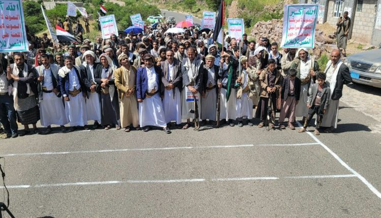 مسيرة جماهيرية بمديرية مغرب عنس بعنوان “يمن الإيمان في جهاد وثبات مع غزة ولبنان”