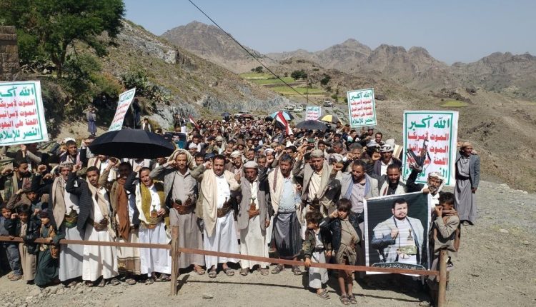 مسيرتين حاشدتين منفصلتين بمديرية المنار تحت شعار “يمن الإيمان في جهاد وثبات مع غزة ولبنان”