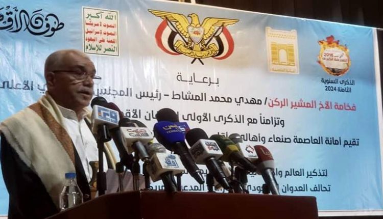 وفي الفعالية التي تأتي بالتزامن مع الذكرى الأولى لانطلاق عملية “طوفان الأقصى” بحضور رئيس مجلس الشورى محمد حسين العيدروس، أكد نائب رئيس مجلس الشورى الشيخ ضيف الله رسام، أن هذه الجريمة وكافة الجرائم التي ارتكبها العدوان لن تزيد الشعب اليمني إلا صموداً واستبسالاً وانتصاراً في مواجهة قوى الشر والعدوان.
