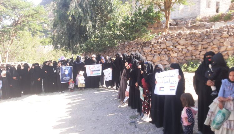 نظمت الهيئة النسائية بقرية حرف السادة بعزلة موشك مديرية مغرب عنس محافظة ذمار وقفة نسائية بمناسبة الذكرى الأولى لإنطلاق معركة طوفان الأقصى تحت شعار “طوفان نحو التحرير”