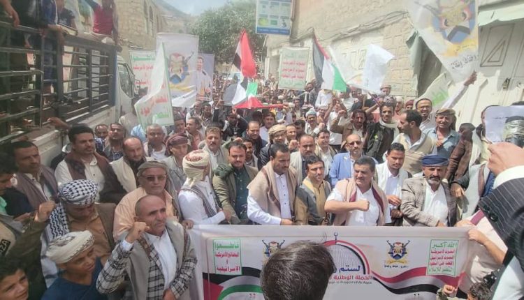 وندد المشاركون في المسيرات التي تقدمتها قيادات السلطة المحلية والتعبوية والشخصيات الاجتماعية، بالجرائم التي يرتكبها الكيان الصهيوني في قطاع غزة ولبنان والغارات الأمريكية البريطانية على اليمن.