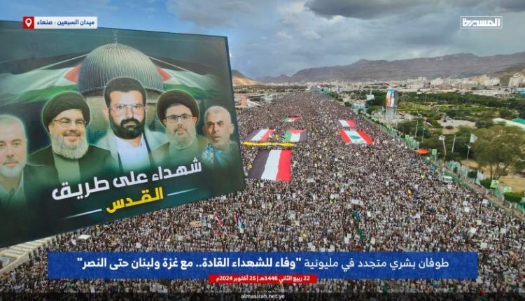 طوفان مليوني متجدد في صنعاء تحت شعار (وفاء للشهداء القادة.. مع غزة ولبنان حتى النصر)